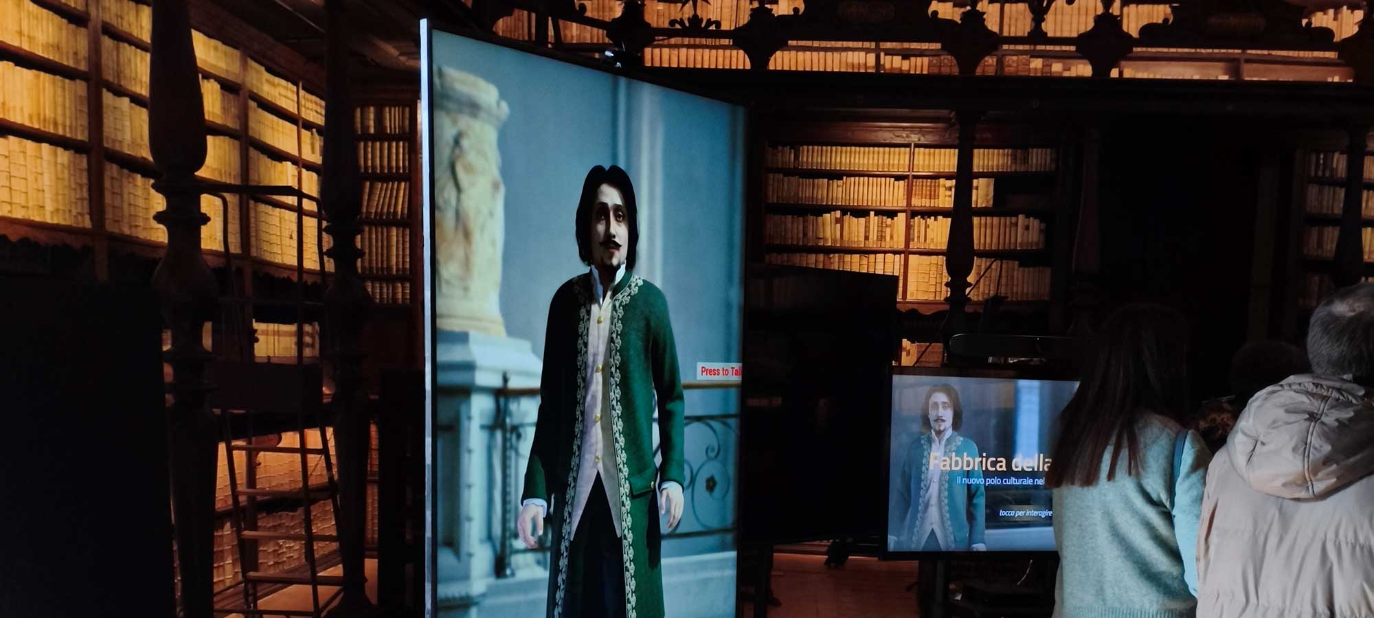 In the Vallicellian library, its creator, Francesco Borromini, reappears as a conversational avatar equipped with a narrative AI specifically designed to discuss Roman Baroque.
