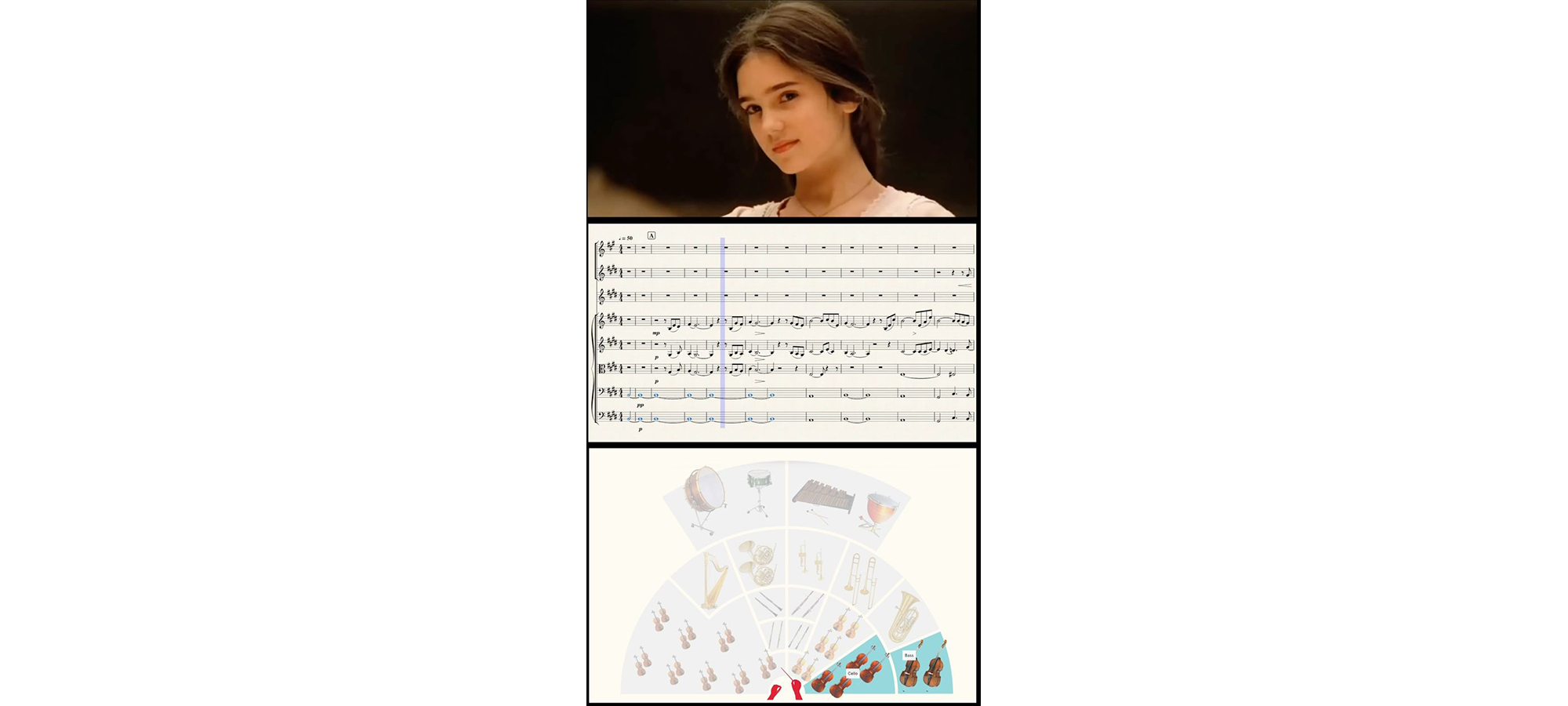 This system, which is very suitable for a professional audience, is also easy to use for a non-expert audience, and actually allows them to “take ownership” of the piece because, in terms of proactivity, it produces a completely personal experience that requires the audience to make choices, decisions, and actions, freely indulging their desires and creativity, on a musical track by the author of the piece, which remains the basis for the variations.