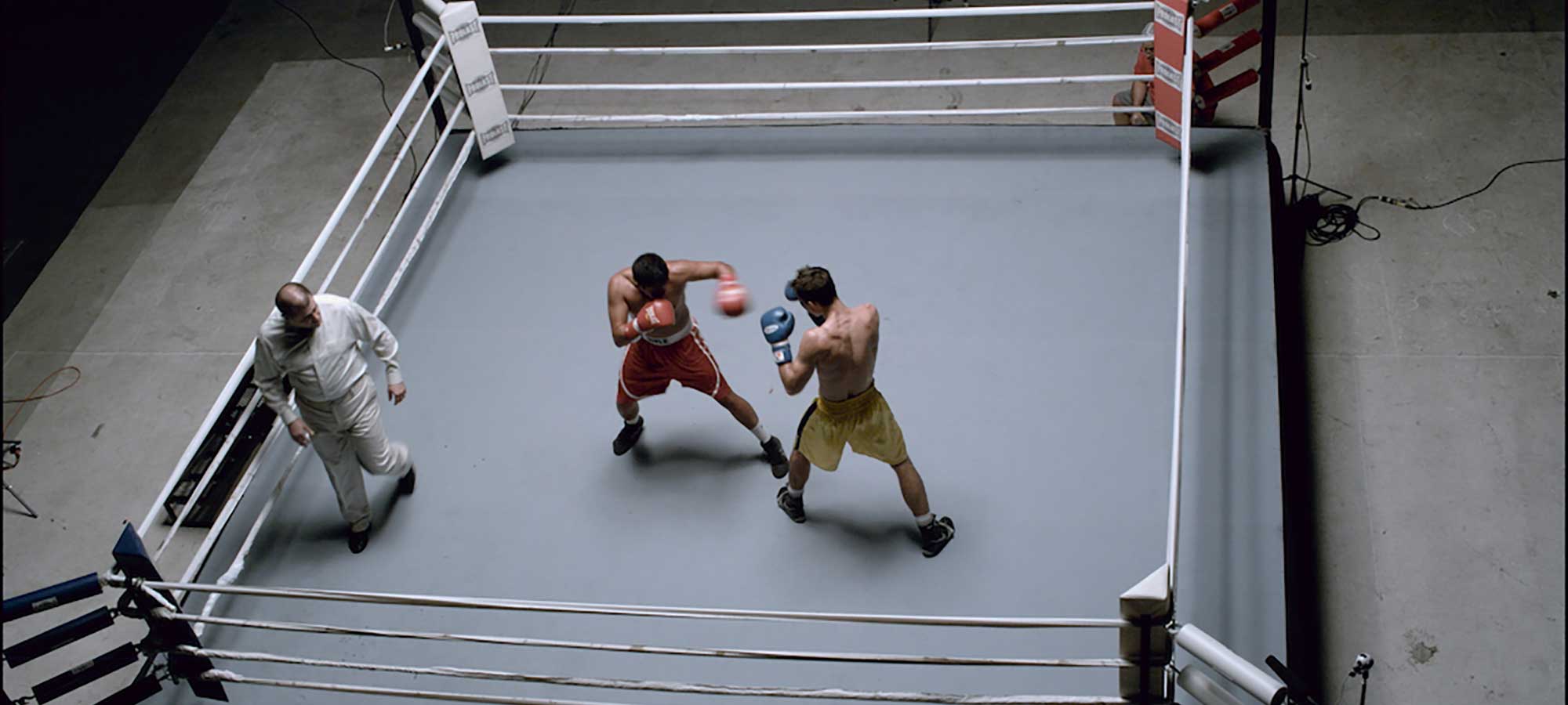 A ring with a referee and real boxers was used, filmed by eight low cameras and eight high cameras, arranged in pairs on either side of the ring. The test was successful, demonstrating that it is possible to reconstruct scenes on a television set or at any other public event monitored by cameras positioned around the event.